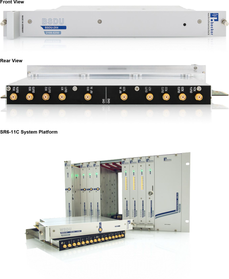 BSDU-2X4 為一款寬頻雙向分波/合路器可插拔模組(slot-in module),具備雙區段、四埠輸出設計,可將來自共用埠的訊號分配至兩個獨立區段中的 4 個等效埠,亦可將多路訊號合併傳送至共用埠,提供高度整合與雙向通訊能力,可支援上下行方向的同時操作,大幅提升測試效率與系統彈性;其涵蓋的頻率範圍自 500 MHz 延伸至超過 9 GHz,覆蓋範圍極廣,完整支援最新 Wi-Fi 與行動通訊頻段,例如 802.11ax、5G NR 毫米波等多種標準,亦相容於未來世代的寬頻通訊技術需求。