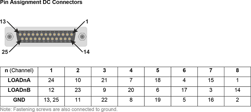 - 當電流超出 ±500 mA 上限時,SHORT、LOAD A 與 LOAD B 開關會自動開啟;可透過軟體 RESET 指令重新閉合。