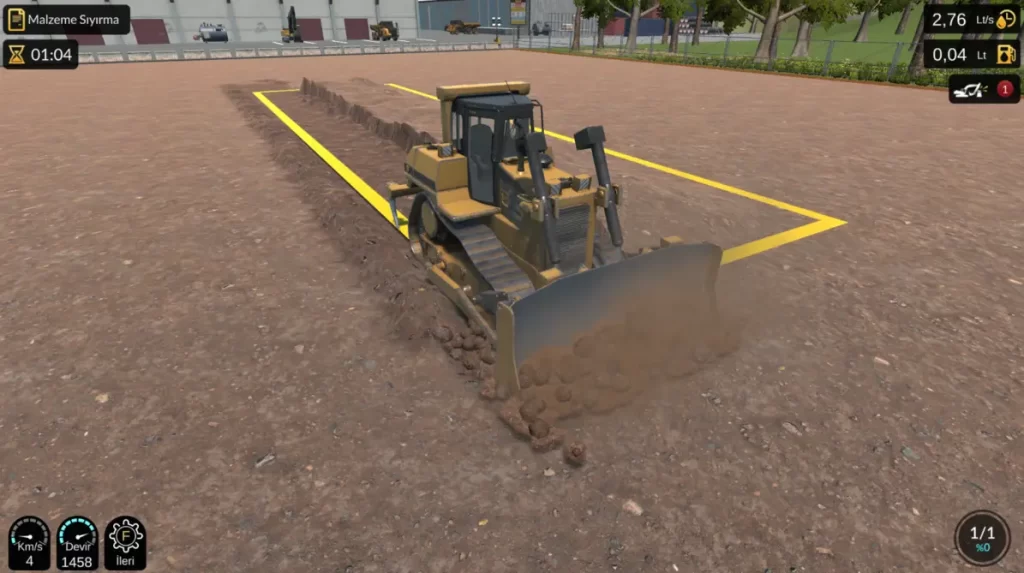 模擬器可精確重現推土機的行為動態,包含引擎轉速(RPM)、扭力、液壓壓力等多項參數計算。這讓操作員深入了解機械系統運作,有助於提升實務應用能力。