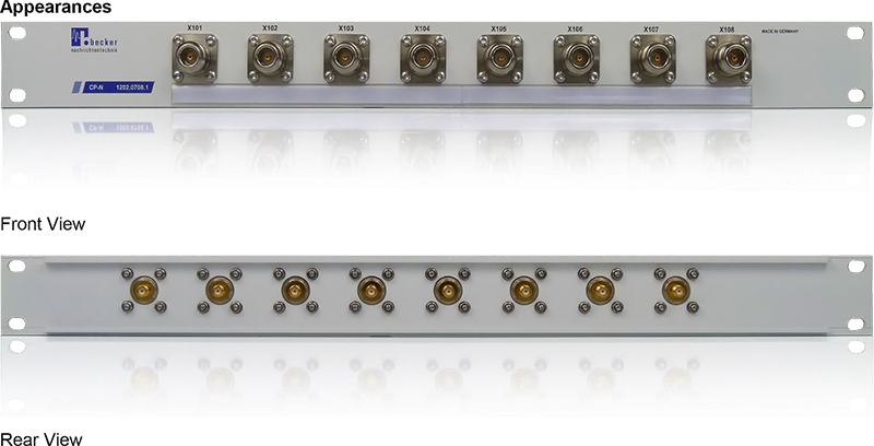 該模組高度為 1U,可安裝於 19 吋標準機架系統中,透過 CP-N,可作為系統內部射頻介面與外部硬體設施之間的高效轉接點。CP-N 的前面板配備標示條,方便使用者命名與識別各連接埠位置,每個埠提供 SMA 母接頭轉 N 型母接頭的轉接功能,實現高可靠性的訊號連接與配線彈性。