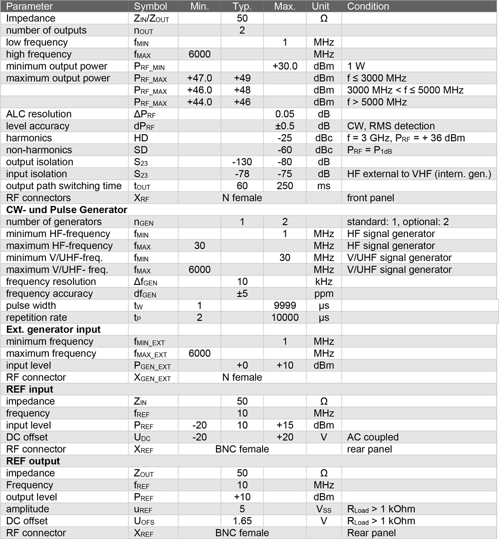 6000 MHz 寬頻段 × 50 W 穩定功率輸出 × 內建 CW/脈衝產生器,雙埠同步驅動,一機整合測試核心