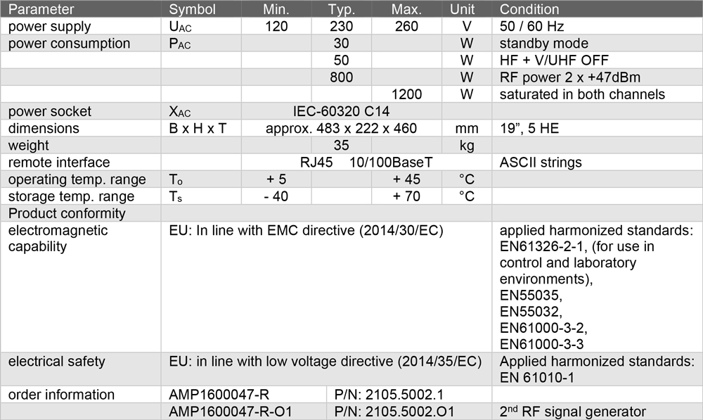 iAMP1600047-R 為一款小型化採用半導體技術的固態功率放大器,內建連續波/脈衝產生器,具備最高 50 W 輸出功率,可同時用於兩個輸出埠,前提為其中一個埠用於短波頻段(1~30 MHz),另一個則需用於不同的頻段;其總可用頻率範圍為 1 MHz 至 6 GHz;使用者可選擇固定增益模式或自動電平控制模式(ALC),在 ALC 模式下,iAMP1600047-R 能直接且精確地提供所需輸出功率等級,且幾乎不會隨時間產生漂移。