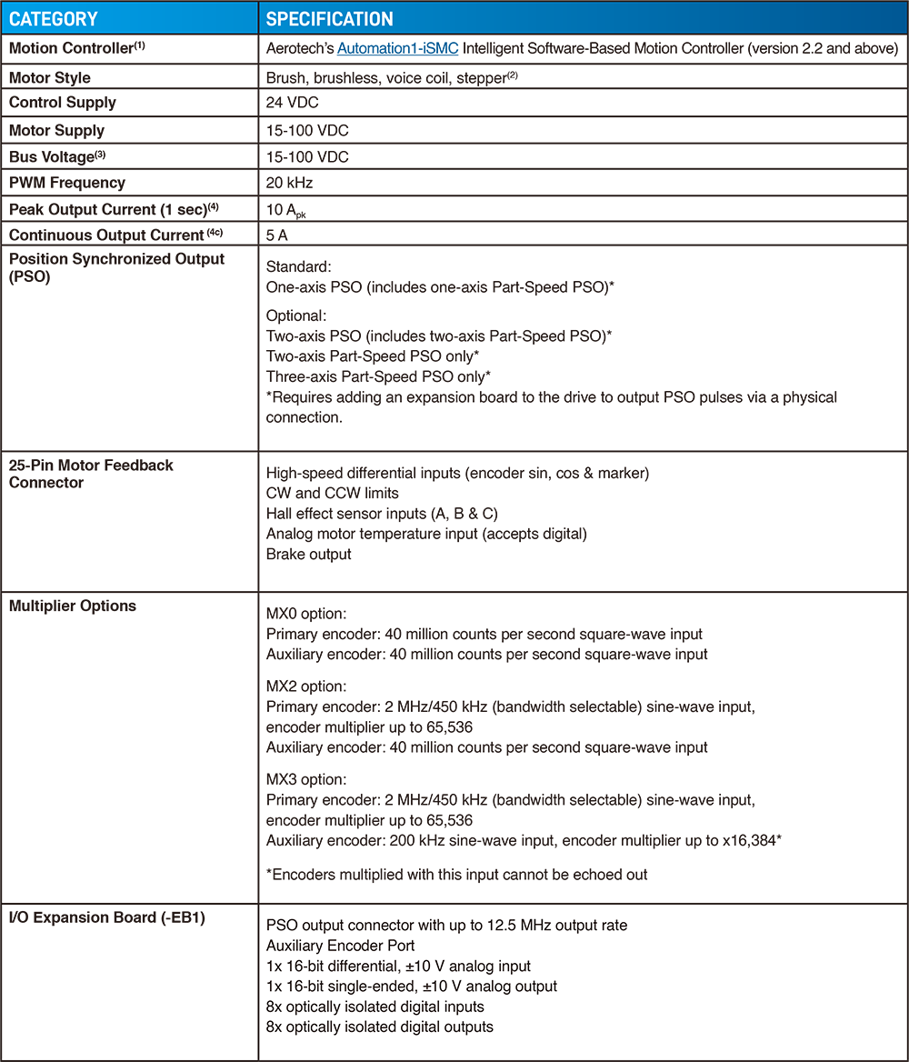 • 內建本地驅動器,提供 100 VDC 匯流排馬達電源與高達 10 安培的峰值輸出