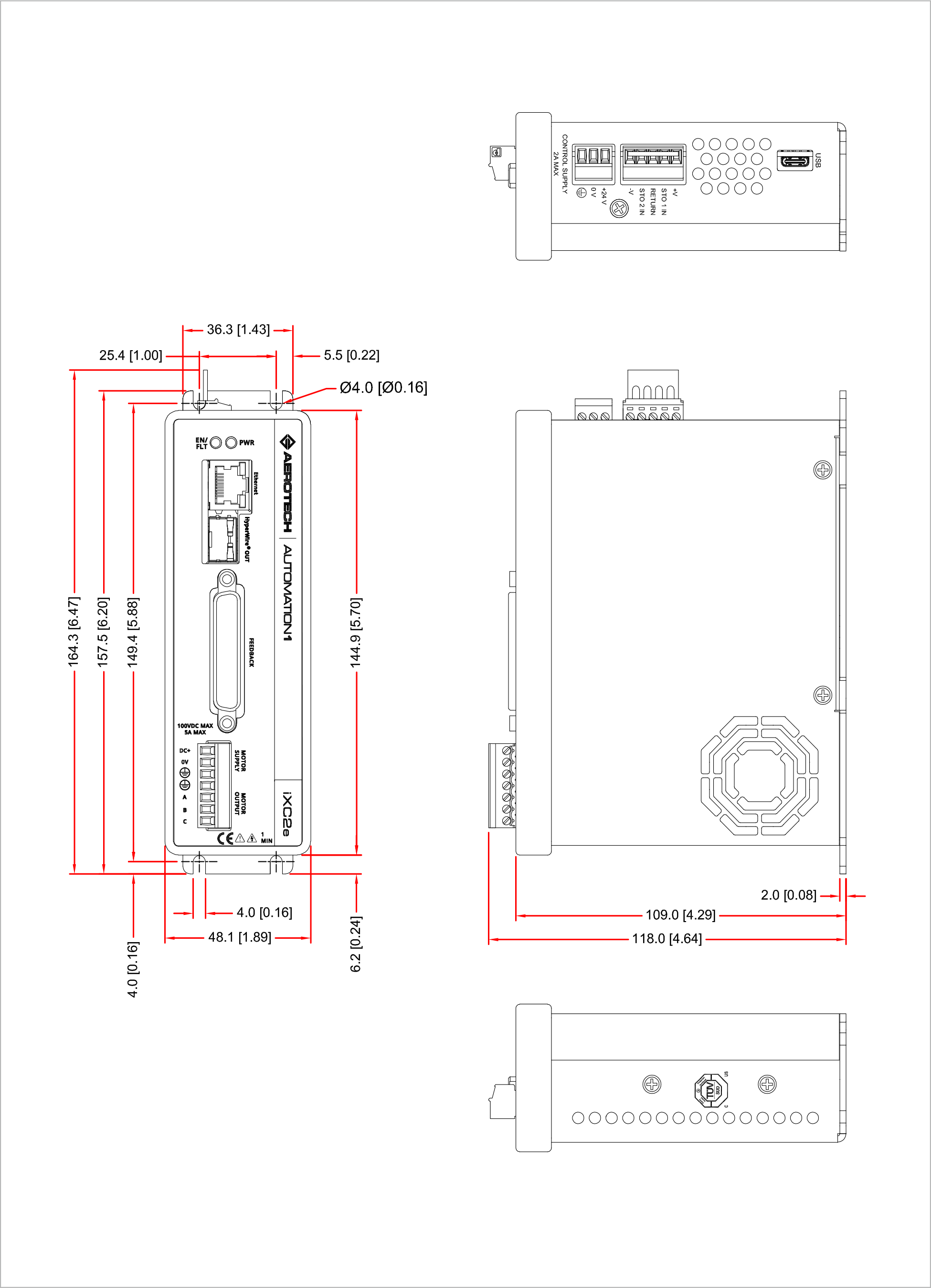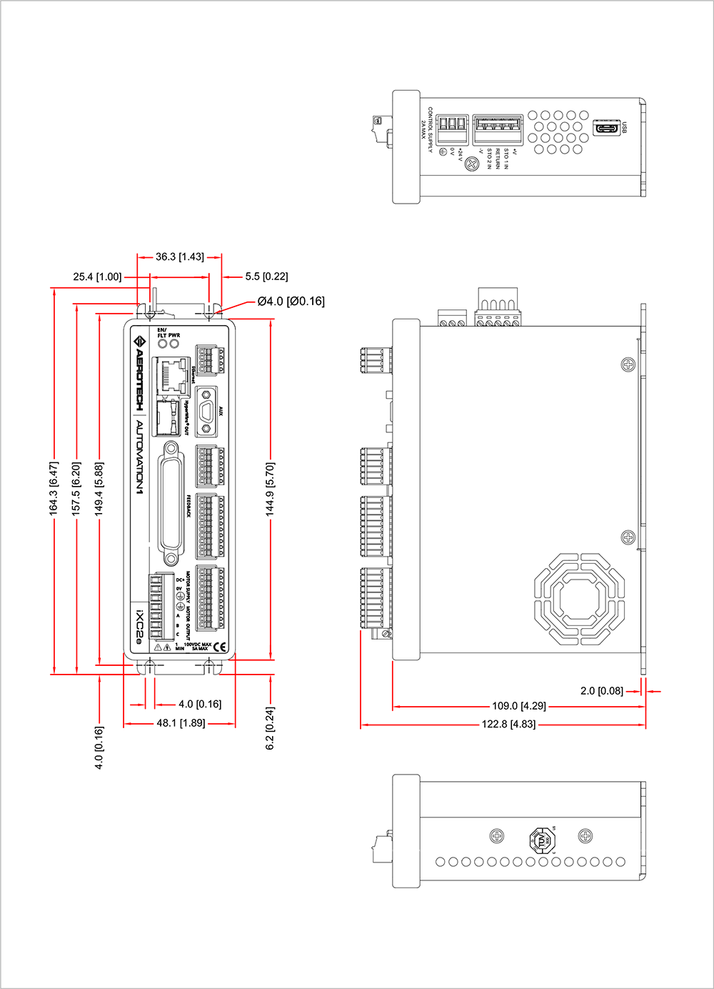 HyperWireiXC2e 與其他 Automation1 驅動器硬體以多軸組態連接變得非常簡單,該機種亦包含一組 24 V、1 A 的煞車輸出 (brake output),此裝置已通過 CE 核准、NRTL 安全認證以及 EU 2015/863 RoHS 3 指令認證,功率放大器的頻寬可透過軟體選取,且效率高達 95%