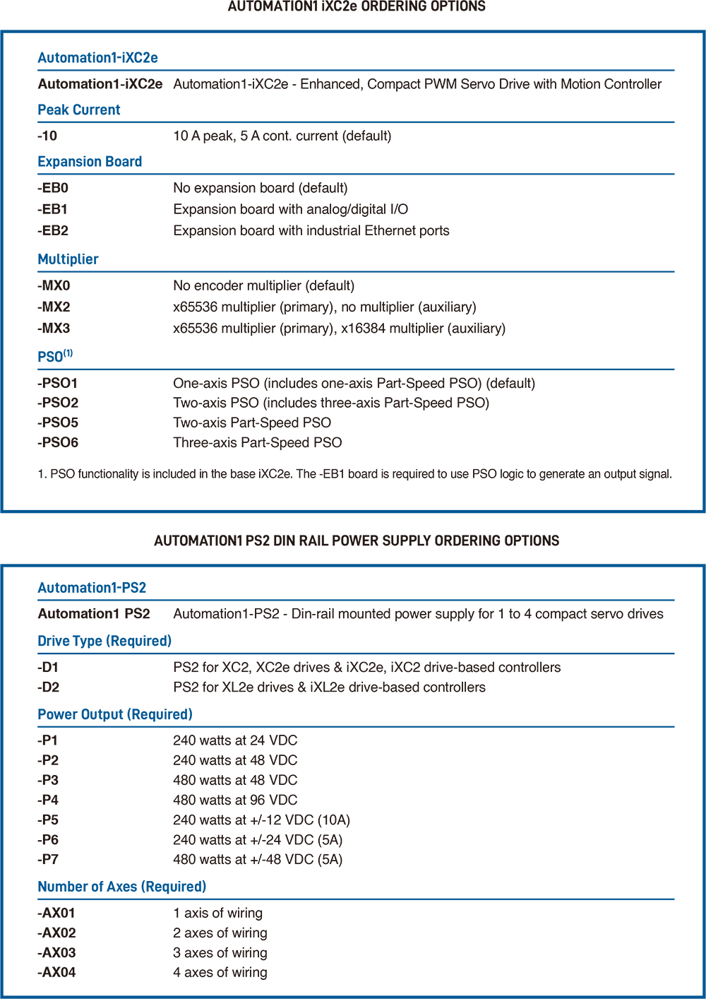 AUTOMATION1 iXC2e, -EB2選配項目