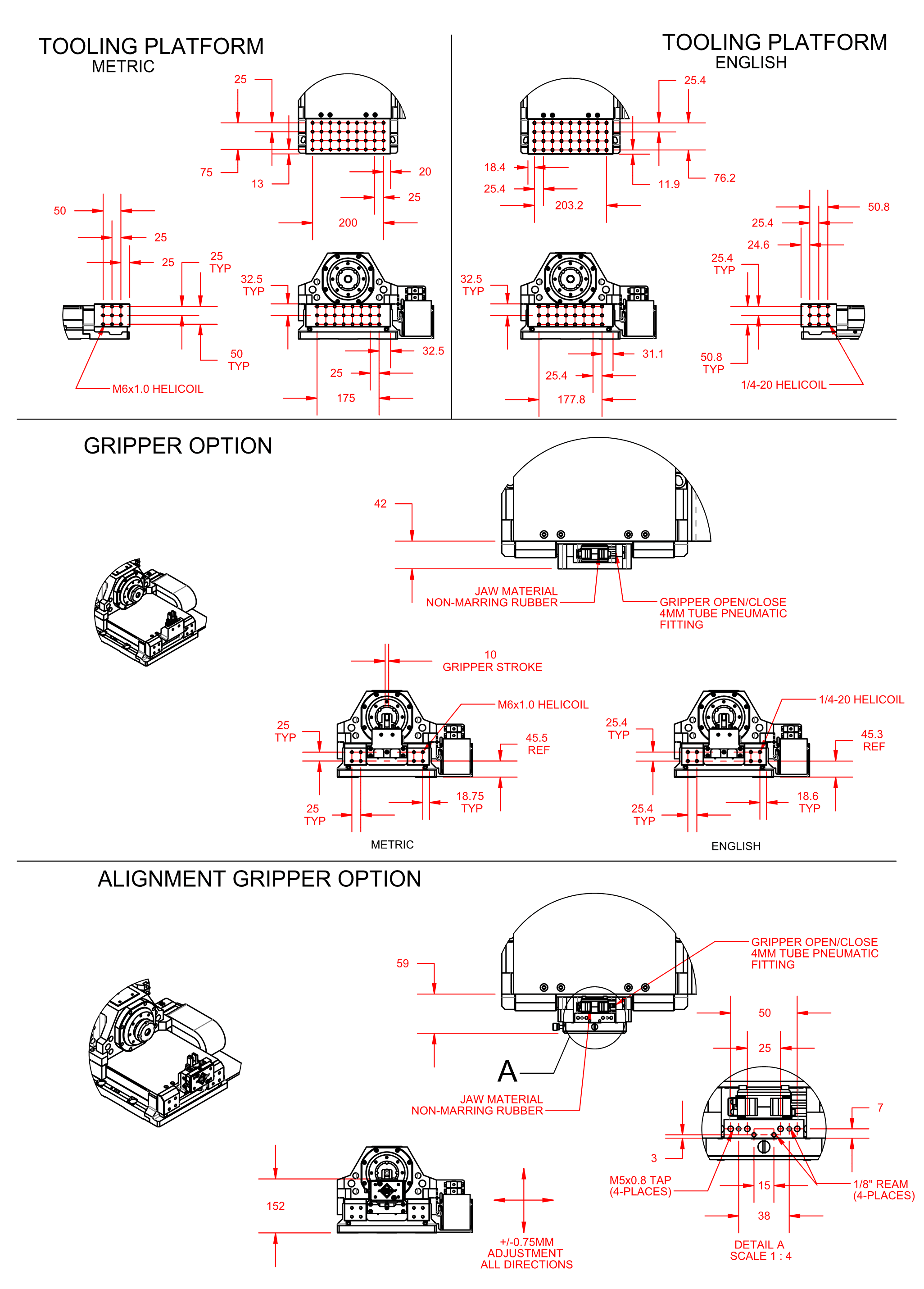 LaserTurn雷射加工平台系列可配備前後加工平台,四面均設有螺孔以供多種夾治具安裝;加工平台直接固定於線性滑台底座上,提供堅固且穩定的慣性參考結構;客製化夾治具,例如:襯套對位、零件收集、或自動材料進給裝置,都能輕鬆安裝;可提供公制或英制硬件與孔位配置,亦可依應用需求提供客製設計。