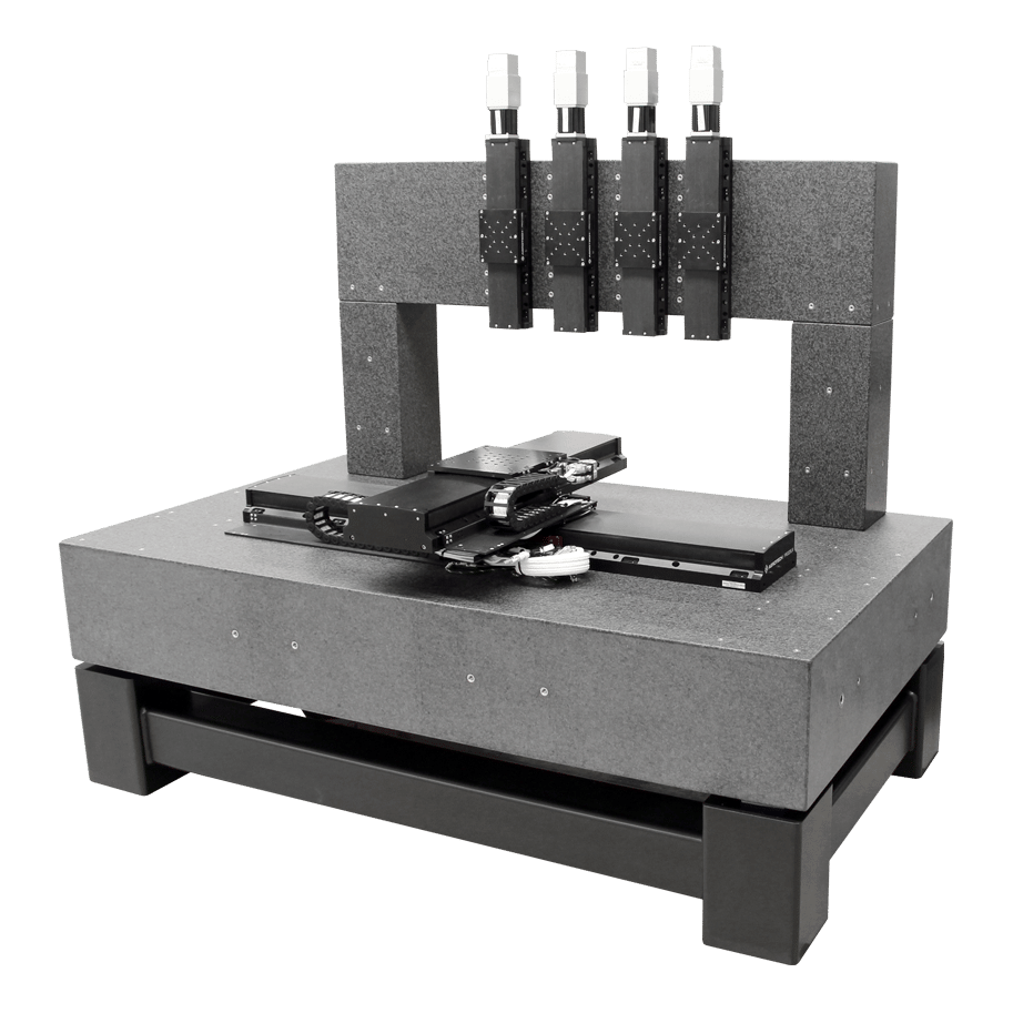 多重 Z 軸分離橋接系統 (Multiple Z-Axes Split Bridge System) 採用 客製化笛卡爾子系統設計,有效降低定位誤差,提升加工精度與穩定性;搭載機械軸承軸系,可支援高負載與動態處理,並結合花崗岩基座與被動隔離系統,確保環境擾動最小化;系統內建四組懸掛式工具載具,提供更高靈活性與產能,同時具備大面積 X-Y 工作區域,適用於大尺寸基板與多工位應用,廣泛應用於半導體、精密製造與光電產業