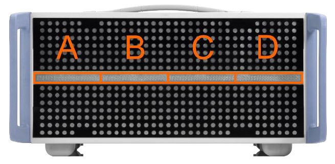 將陣列分為四個獨立區段,每個區段可連接至 AREG800A 的不同 IF 通道。這允許同時模擬多達四個獨立目標,每個目標具有不同的距離、速度(都卜勒)和雷達散射截面(RCS)。