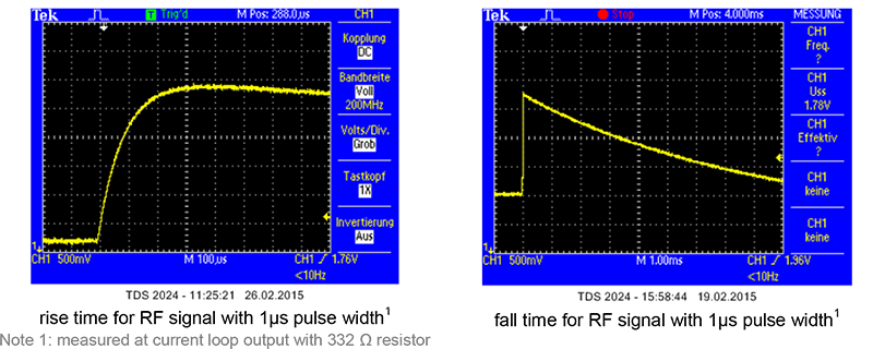 - 脈衝訊號(T < 5 μs):P[dBm] = -20 dBm + I_LOOP × 2.6 dBm/mA