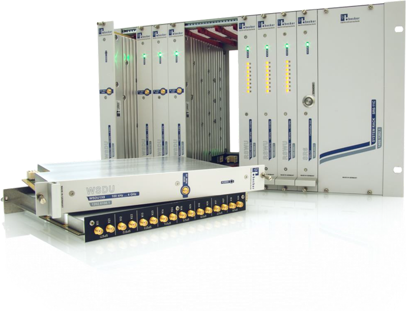 RSWM-4X4 模組設計可整合至 SR6-11C 系統平台,SR6-11C 擁有 11 個模組插槽,可彈性配置如射頻開關、切換矩陣、多路耦合器、衰減器、BIAS-T、電平偵測器、雙向分配器/合波器等射頻訊號調理模組,並可搭配控制單元組成完整的可程式化測試架構。