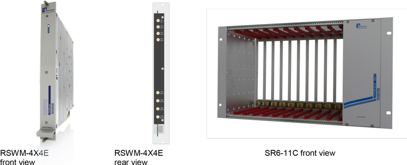 RSWM-4X4E 模組設計可無縫整合至 SR6-11C 系統平台中,該平台提供 11 組可擴充模組插槽,可搭配各類射頻模組,如射頻切換器、切換矩陣、多工器、衰減器、偏壓注入器(BIAS-T)、電平偵測器、雙向合路器/分波器等,實現高彈性訊號處理與管理架構。