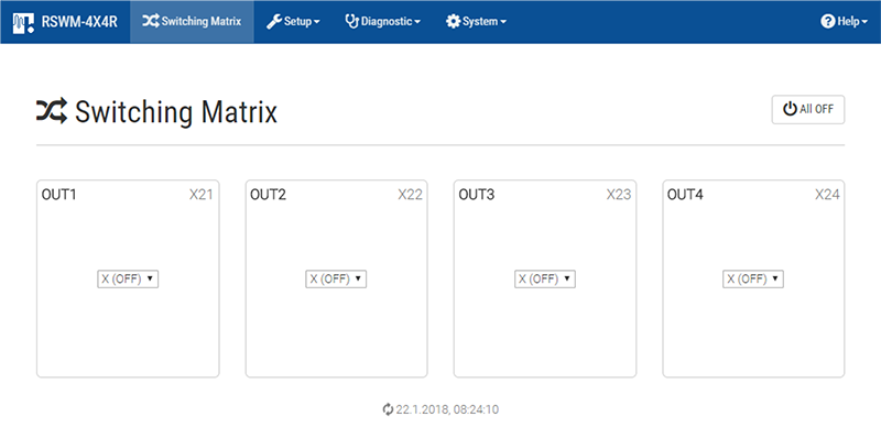 BSWM-4X4ER 採用 非阻斷型切換矩陣架構(Non-Blocking Matrix),具備四個對等的輸入埠與四個對等的輸出埠,可任意組合連接;單一輸入可同時對應多個輸出,且無訊號衰減。