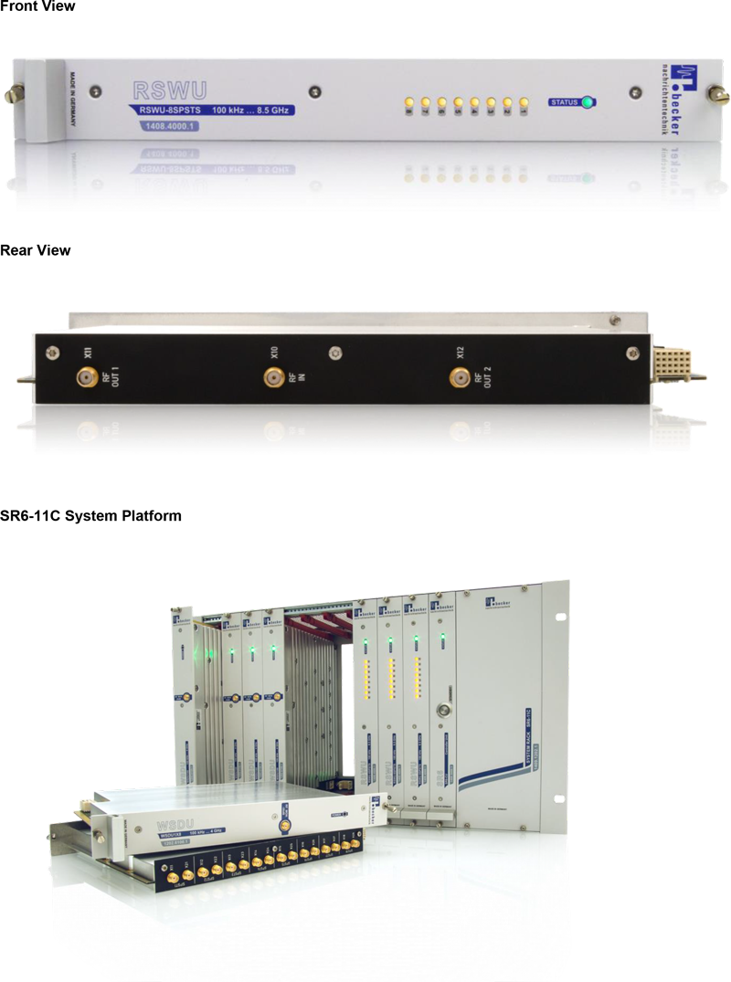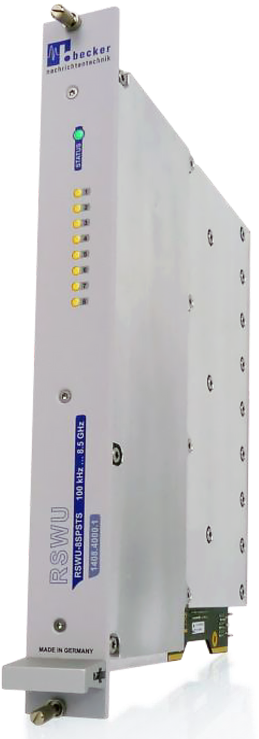 RSWU-8SPSTS 為專為 SR6-11C 系統平台設計之滑入式模組,SR6-11C 系統共具備 11 組插槽,可容納射頻開關、矩陣、分波器、衰減器、BIAS-T、電平偵測器、雙向分波器/合路器等各類射頻訊號處理模組及控制單元。