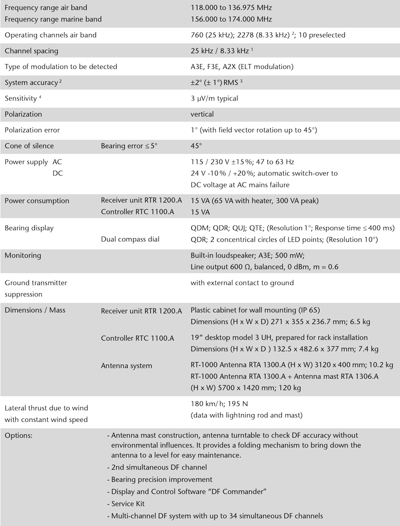RT-1000 VDF 系統是專門為航空交通管制(ATC)和船舶交通服務(VTS)而設計的,符合國際民航組織(ICAO)和德國航空安全局(DFS)的相關規範;RT-1000 無線電測向儀也被稱為 Rohde & Schwarz 的 PA030 型號,是同類產品中的指標性設備,目前全球已經有超過 150 套系統在實際使用,證明了它的穩定性和可靠性。