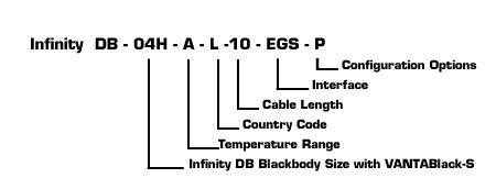 SBIR 根據客戶可選擇的六種不同特性來分類黑體型號;這些特性包括黑體尺寸、溫度範圍、國家的電源線類型、指定的電纜長度、通訊介面選項與配置選項。