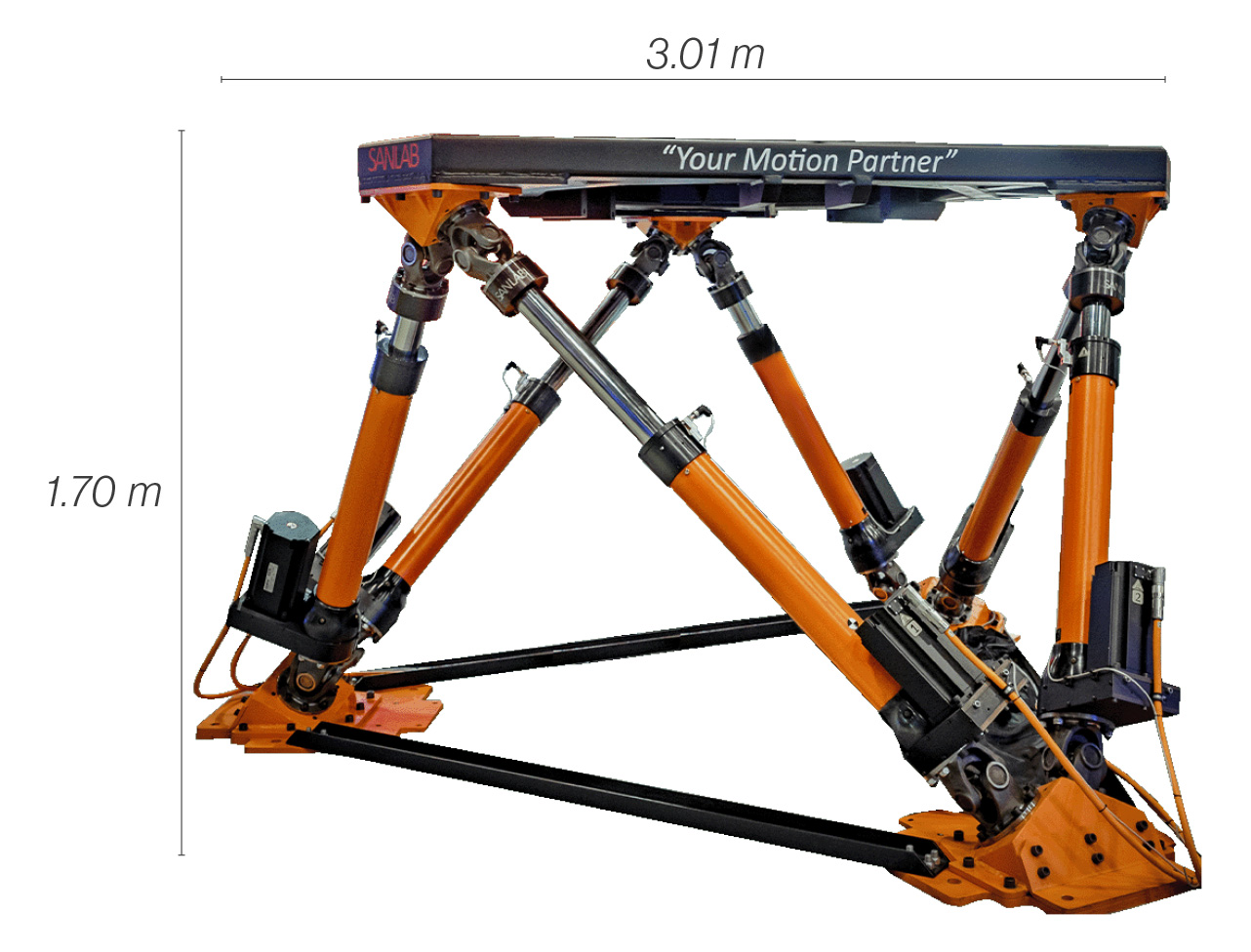 - 性能一致: 保持標準型 SMotion1800 的所有性能規格(包括縱移、側移、垂盪、橫搖、俯仰和偏航能力,以及加速度和慣性矩)。