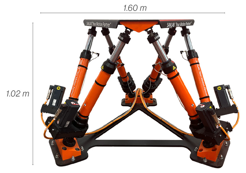 SMotion800 透過強化的結構設計提供穩定的 6DOF 運動性能,專為重型負載和連續操作而優化;其設計可支援嚴苛的測試平台、模擬實驗室以及各種整合系統。