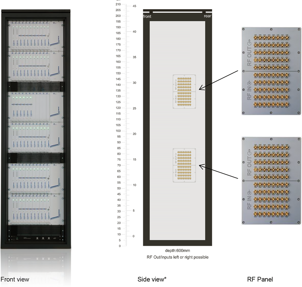 為了靈活因應不同測試環境與烘箱佈局,TSQA-1X80PM 提供兩組 RF 面板端子,可選擇安裝於設備的左側或右側,每個面板包含40 組輸出端與 40 組輸入端,並隨附 160 條長度為 1 公尺的 RF 線材,方便 DUT 連接與快速佈線。