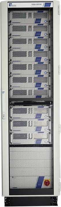 在 HTOL 測試中,常見一次同時測試多達 77 顆 DUT,若需更高的通道數,TSQA-1X8PMF 可透過堆疊方式整合於 19 吋系統機架中,提升擴充性;例如,10 台 TSQA-1X8PMF 子系統可構建一套 80 通道 HTOL 測試系統,並可安裝於僅 42U 的高度空間內,實現極為緊湊的高密度配置;奧創系統亦可依照客戶需求,提供高通道數量的完整解決方案。
