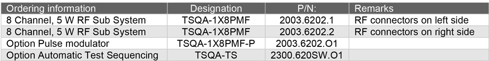 選配脈衝調變器(pulse modulator)後,TSQA-1X8PMF 可產生 CW 連續波與脈衝調變訊號,大幅拓展測試情境與應用彈性。