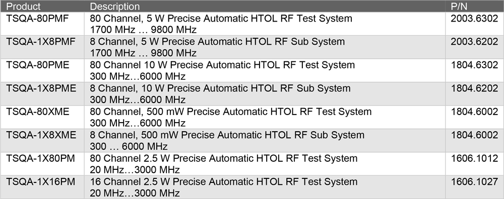 針對包含複雜調變訊號的 HTOL 測試,例如 LTE 或 Wi-Fi 標準,TSQA-1X8PMF 提供外部訊號產生器輸入介面,以支援進階應用。