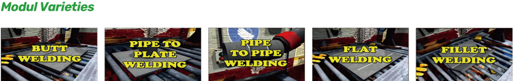 該系統提供MIG/MAG 氣體金屬電弧焊 (GMAW)、焊條電弧焊 (SMAW)、鎢極氬弧焊 (TIG)、自保護藥芯電弧焊 (FCAW-S) 及氣體保護藥芯電弧焊 (FCAW-G) 等多種焊接技術培訓,並支援多種焊接姿勢,包括: