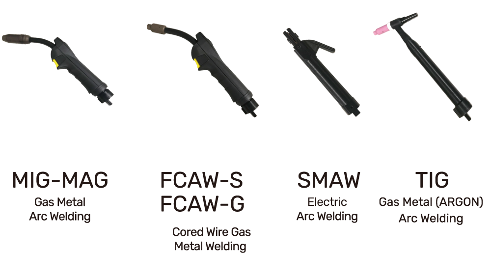圖中為了四種不同類型的焊接槍,分別對應不同的焊接技術: