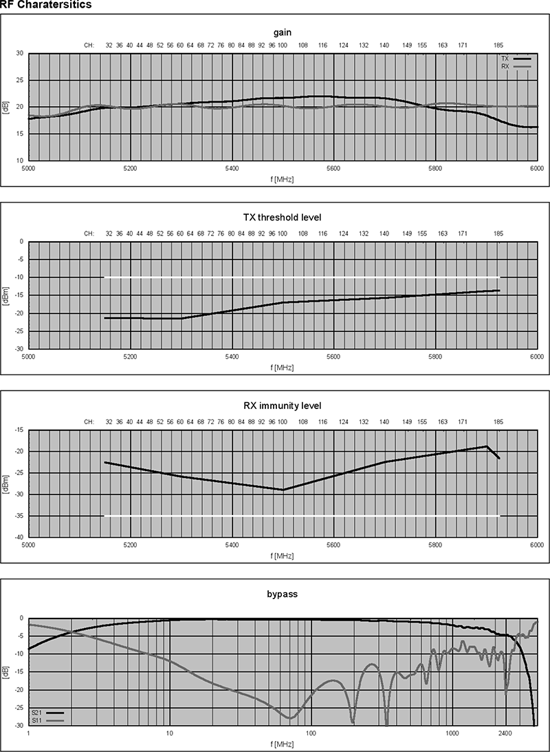 AMP51505925-TRX 在 TX 與 RX 方向上皆提供典型增益 20 dB,能有效補償輻射電纜系統中因縱向長距離傳輸所造成的損耗;在實際應用中,為支援高階調變(如 64-QAM、256-QAM)與高速資料傳輸,建議輻射電纜任一點的功率需維持在約 0 dBm 以上;例如,若搭配 Eupen 所提供之 RMC12-CH 輻射電纜,每段約可支援長達 80 公尺傳輸距離,可透過一組 AMP51505925-TRX 進行驅動補償。