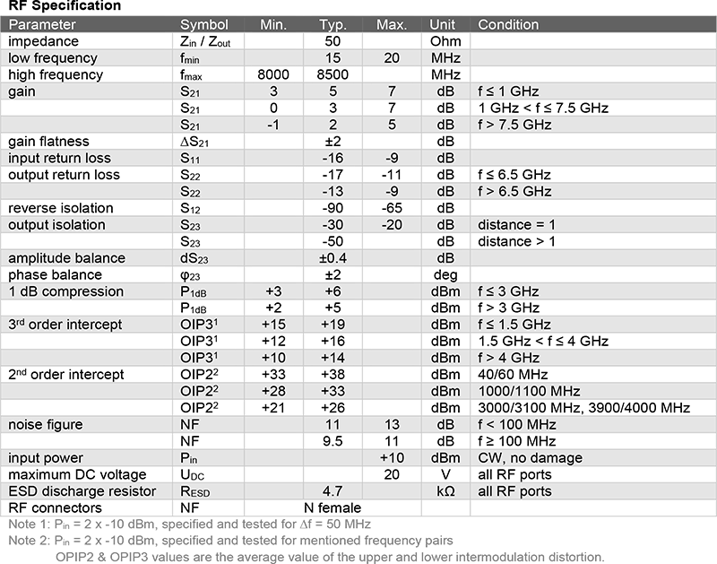 - 高動態範圍設計,支援微弱與強訊號共存放大