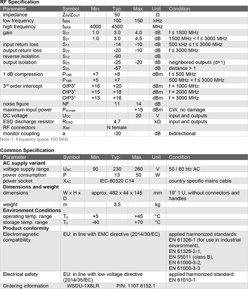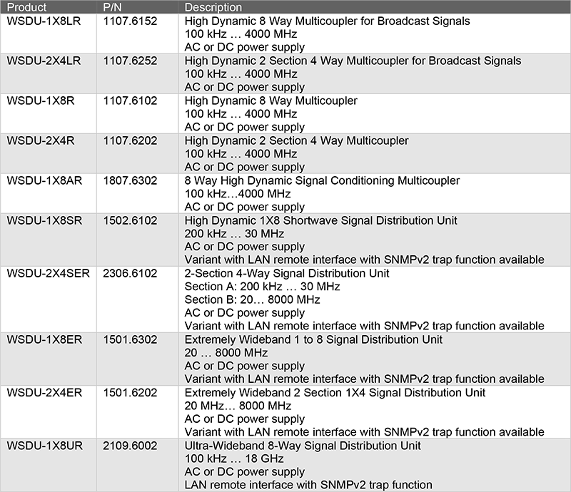 多數待測物於研發或驗證階段,均需導入多種不同頻段的射頻訊號源,WSDU-1X8LR 具備寬頻與高動態範圍特性,可將單一射頻源訊號等量分配至最多八組輸出,並確保低失真與高保真度表現,是用於建構創新型廣播訊號分配系統的理想方案,涵蓋從 AM 到 SDARS 等各類訊號。