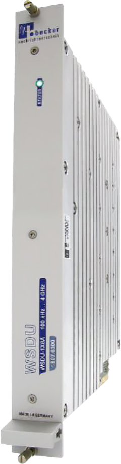 WSDU-2X4A 為一款高動態寬頻訊號分配單元,由兩組獨立主動式多工耦合器(Multicoupler)所構成,每一輸出路徑皆配備可程式化衰減器,因此兩組中各 4 個輸出皆可於寬廣範圍內獨立設定電平;此模組具備高輸出對輸出隔離度,即使變更單一輸出負載,亦不影響其餘通道穩定性,可確保多通道 DUT(待測物)同時進行穩定分配;增益可達 6 dB,衰減控制範圍達 95.25 dB,並具備 0.25 dB 微調解析度,使其特別適用於廣播、導航、研發、量產測試等多樣化應用需求。