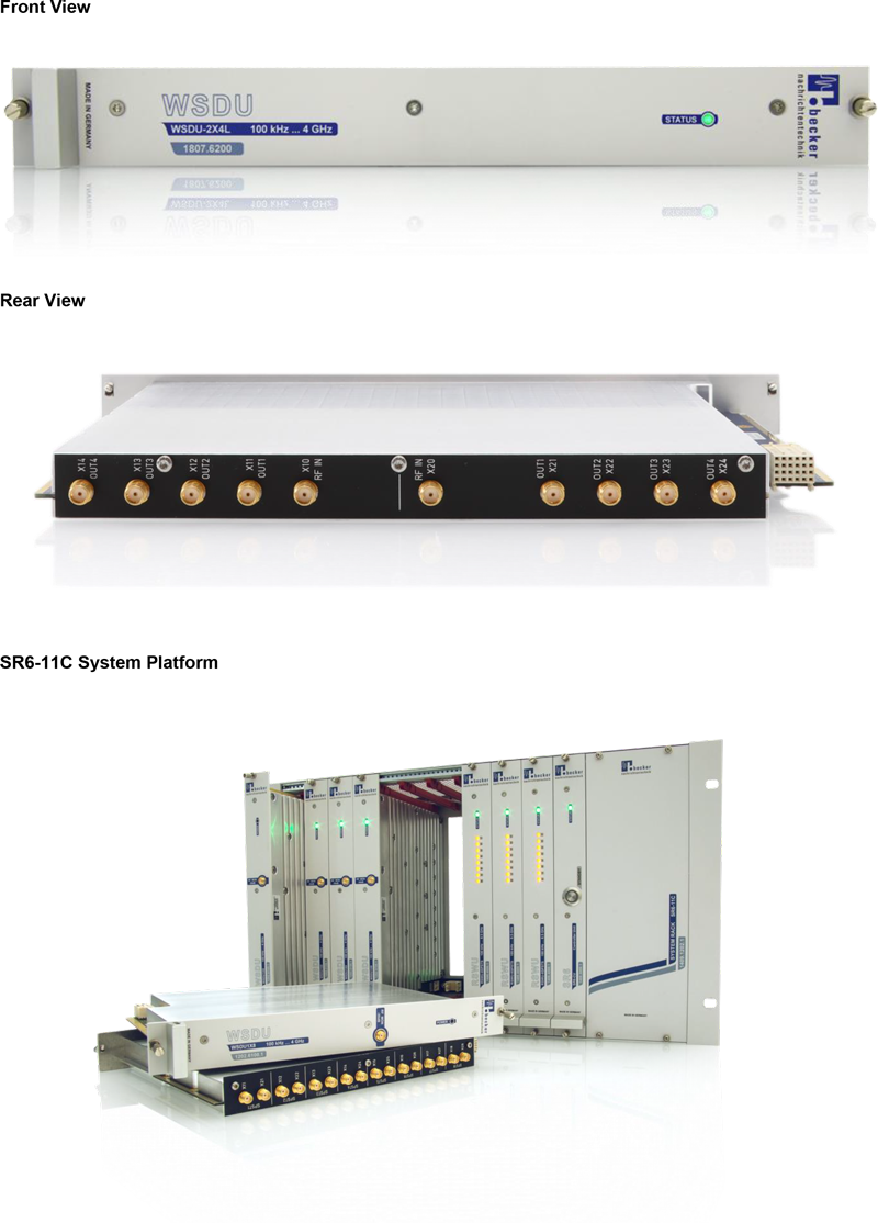 WSDU-2X4L 模組可直接整合於 SR6-11C 系統平台中使用,該平台提供 11 個插槽,可用於安裝包含 RF 開關、矩陣、多路耦合器、可變衰減器、BIAS-T、功率檢測器、雙向分配器/合波器等各類訊號調理模組,並搭配控制單元共同運作。若需進行 WSDU-2X4L 模組狀態監控與系統控制,需搭配使用 SR6-CU 控制單元。
